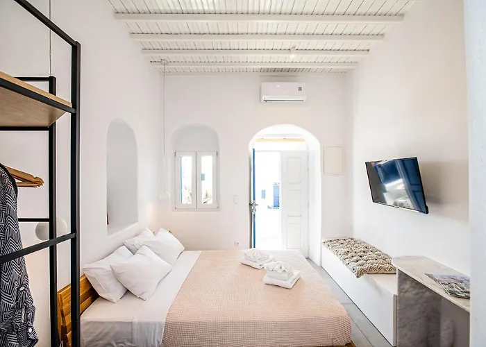 Gasten van dit 1-badkamer appartement kunnen het centrum van Mykonos Town bereiken met een wandeling van 5 minuten en het Archeologisch museum van Mykonos bezoeken, binnen 650 meter loopafstand. Mykonos House Secrecy, Mykonos Town Appartement is op slechts 5 minuten te voet van het Landbouwmuseum en de luchthaven Mikonos is op 10 minuten rijden.